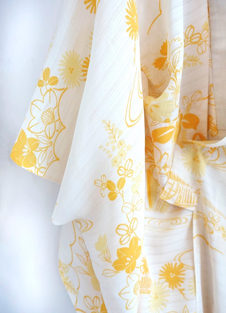 Kort kimono med gule bambusblade og prikmønster