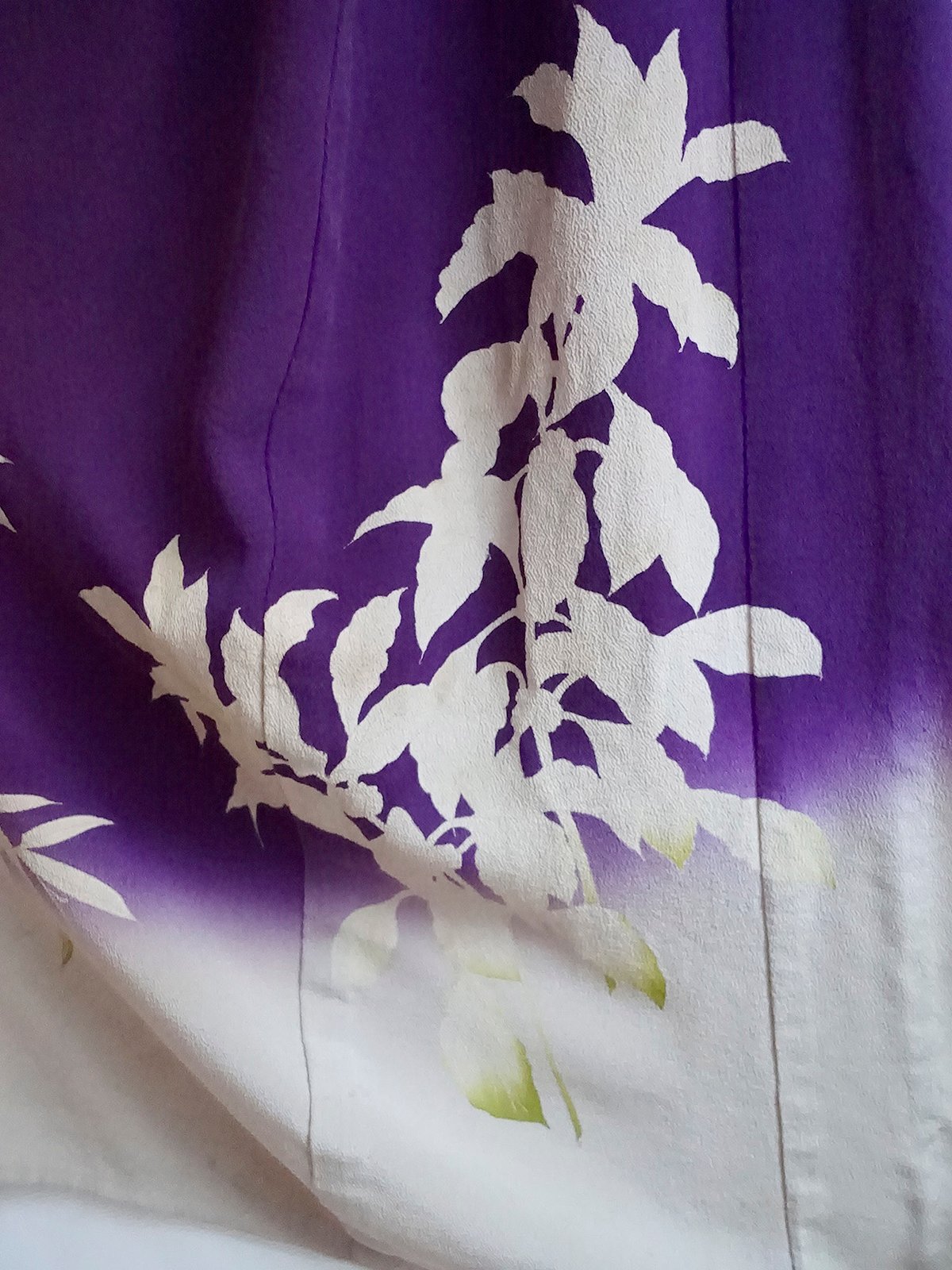 Der er anvendt yuzen teknik til at male blomsternes omrids på silken. Derefter vaskes frugtpastaen bort og farverne males ind i hånden.